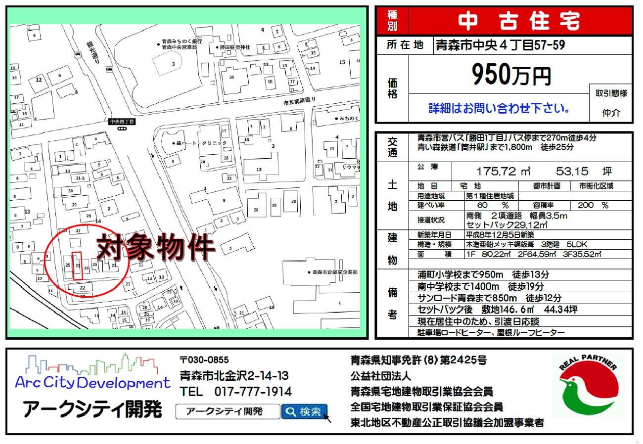 中古住宅青森市中央4丁目・青森市金沢1丁目・